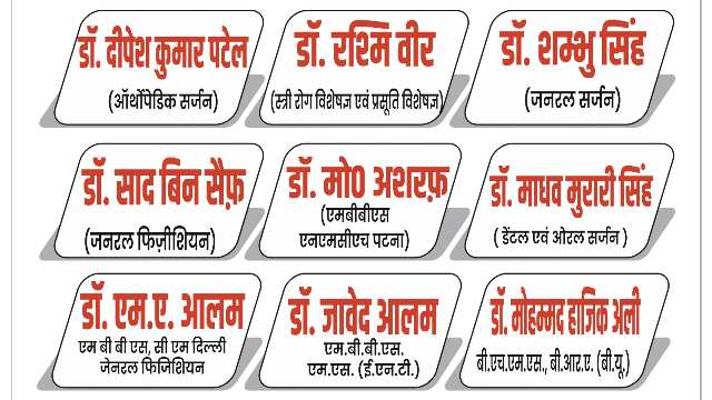 आंख का मुफ्त ऑपरेशन , छाती, पेट, एवं शवास रोग विशेषज्ञ, स्त्री एवं प्रसूति रोग विशेषज्ञा., नवजात शिशु एवं बाल रोग विशेषज्ञ,, हड्डी, जोड़, नस, रोग विशेषज्ञ।, सभी प्रकार के जनरल ऑपरेशन की सुविधा। For Docters Appointment – Call 9546548888